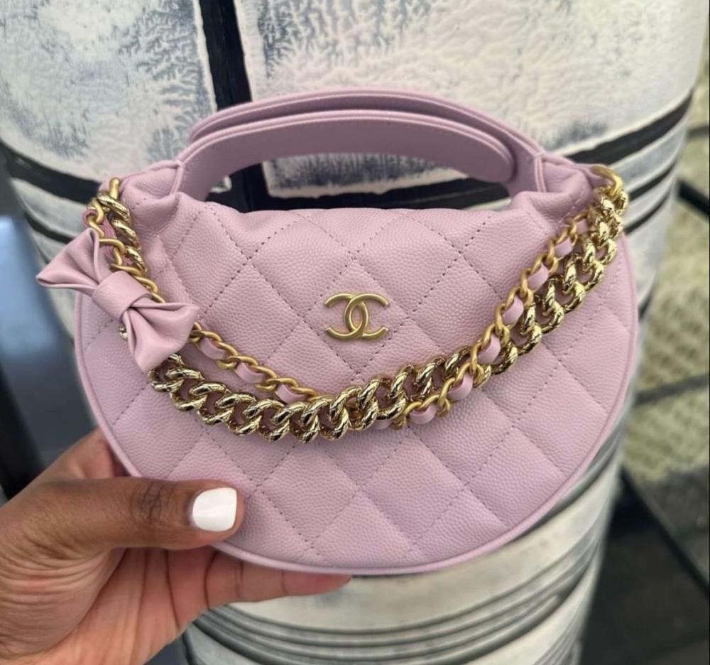 Get ready for a charming look with this Chanel handbag, featuring an elegant and modern design and a gorgeous pink color that adds a touch of beauty and femininity to your look.