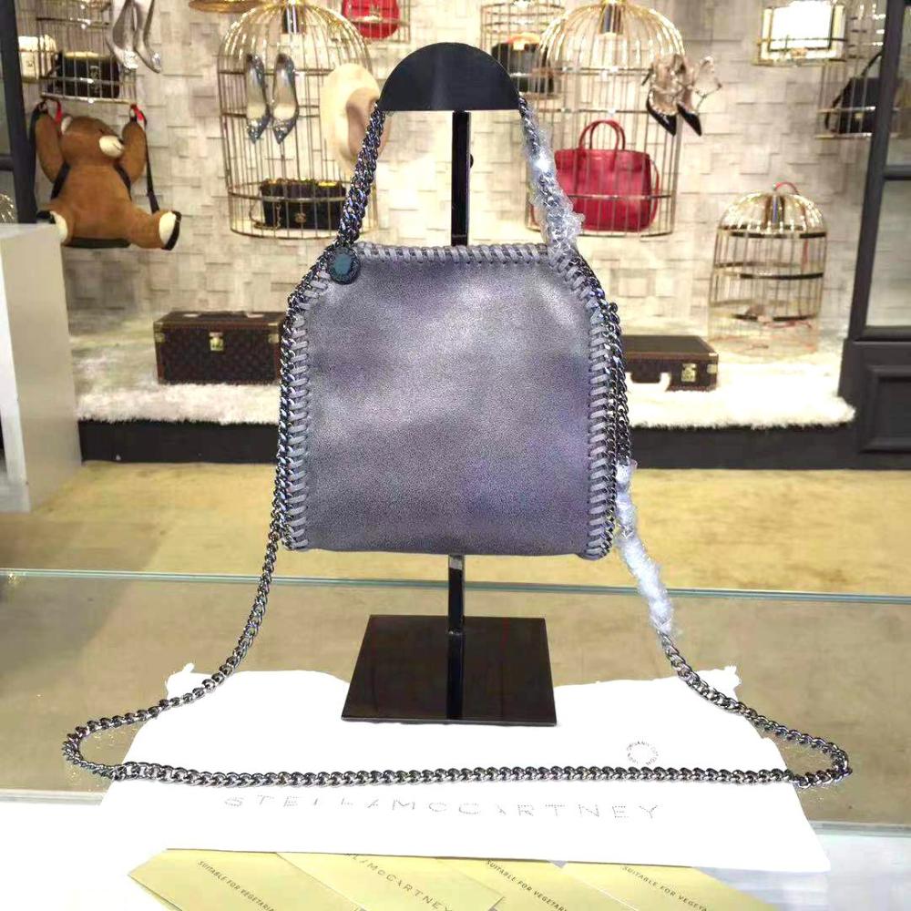 حقيبة فالابيلا برايت سيلفر من ستيلا مكارتني، التي تجمع بين التصميم الفاخر والاستدامة البيئية. تتميز بلون فضي مشرق يمنحك إطلالة جذابة، مع حواف مزينة بسلسلة معدنية أنيقة تعكس أسلوب العلامة الجريء. تصميمها العملي يجعلها خيارًا مثالياً لإطلالاتك اليومية والمناسبات الخاصة، حيث توفر مساحة واسعة لحمل الضروريات بأسلوب أنيق ومريح.