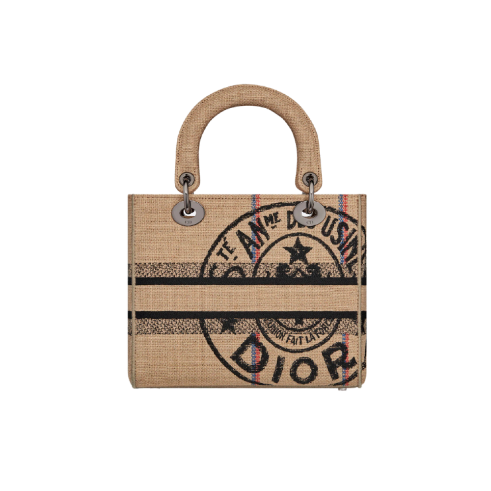 شنطة ديور قماش جوت بيج مطرزة أسود مقابض قماشية
