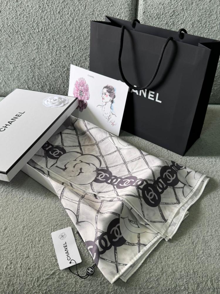 سكارف صيفي شانيل نسائي أبيض واسود مزركش