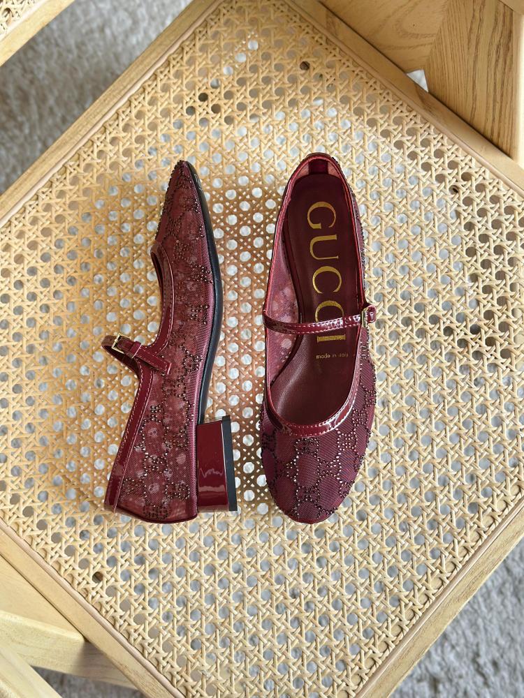 حذاء نسائي بكعب متوسط جوتشي شبكي مزين بستراس لون خمري