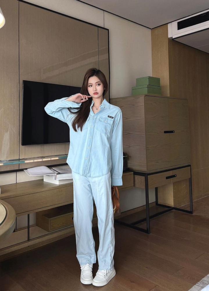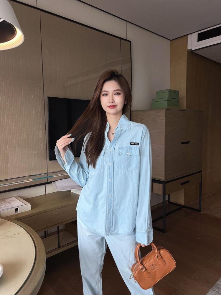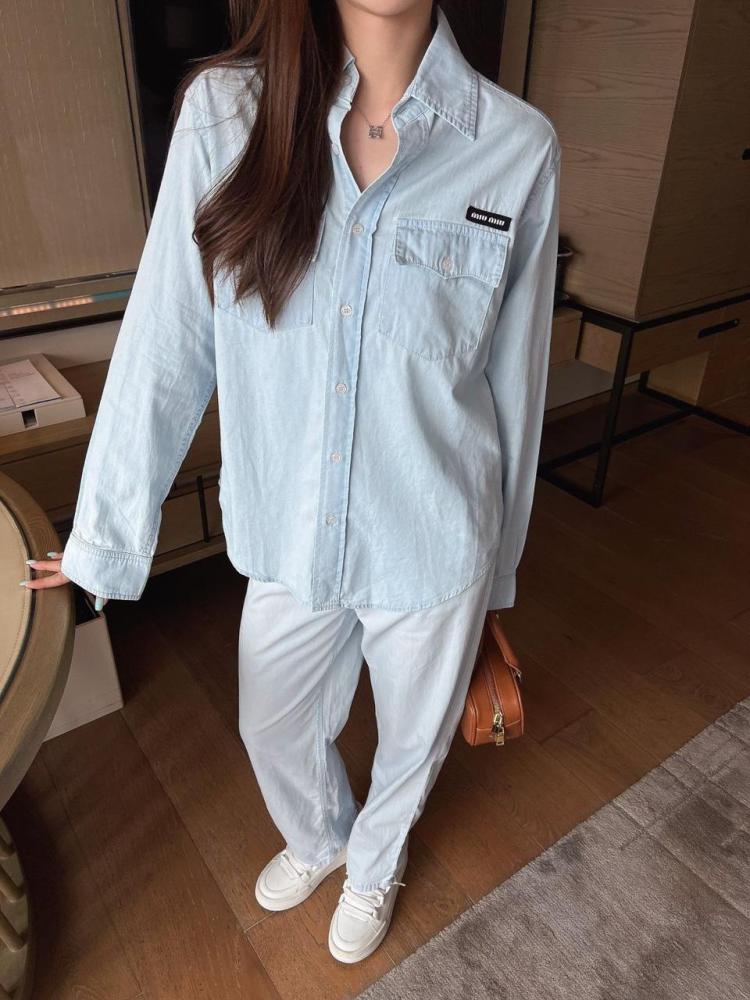 تمتعي بأسلوب عصري وناعم مع سيت ميو ميو النسائي المصنوع من الجينز الفاتح، تصميم مثالي يجمع بين الراحة والأنوثة في تنسيق واحد. يأتي السيت بخامة جينز ناعمة وخفيفة تواكب صيحات الموضة، ويمنحك إطلالة كاجوال راقية تناسب الطلعات اليومية والمشاوير السريعة بكل ثقة وأناقة.