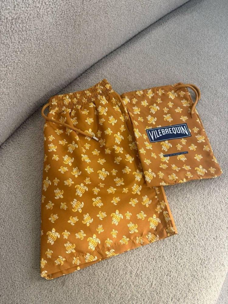 ملابس سباحة للرجال فيلبريكين شورت مع كيس بلون عسلي وطبعة ذهبية