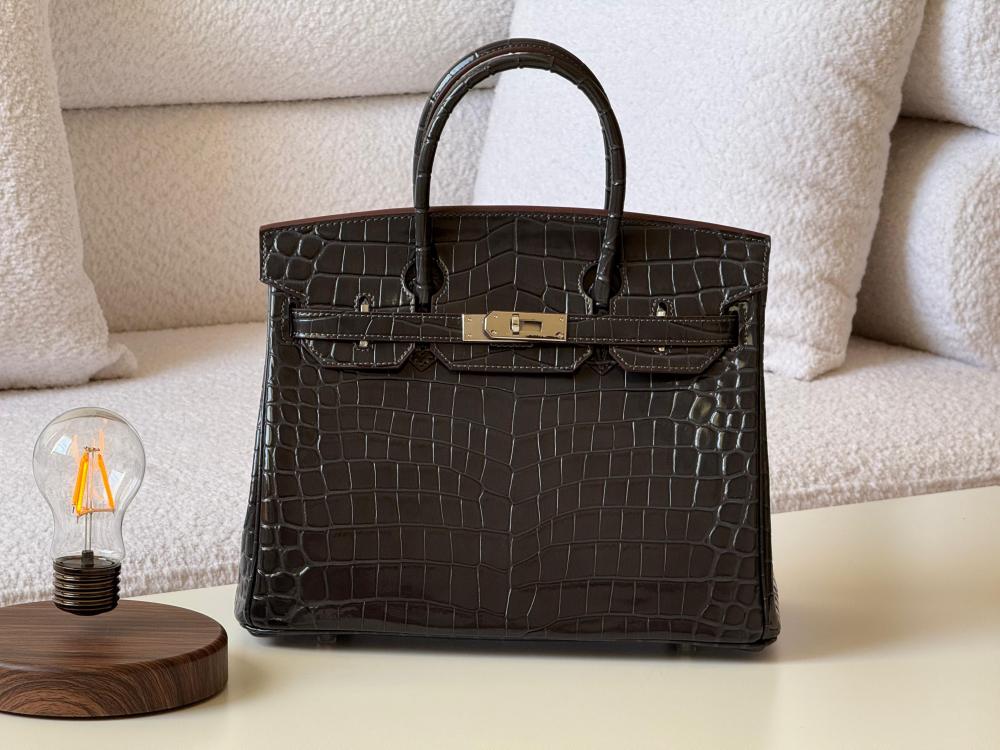 شنطه هيرمز بيركين كروك 30سم حقيبة جلد لون حديدي