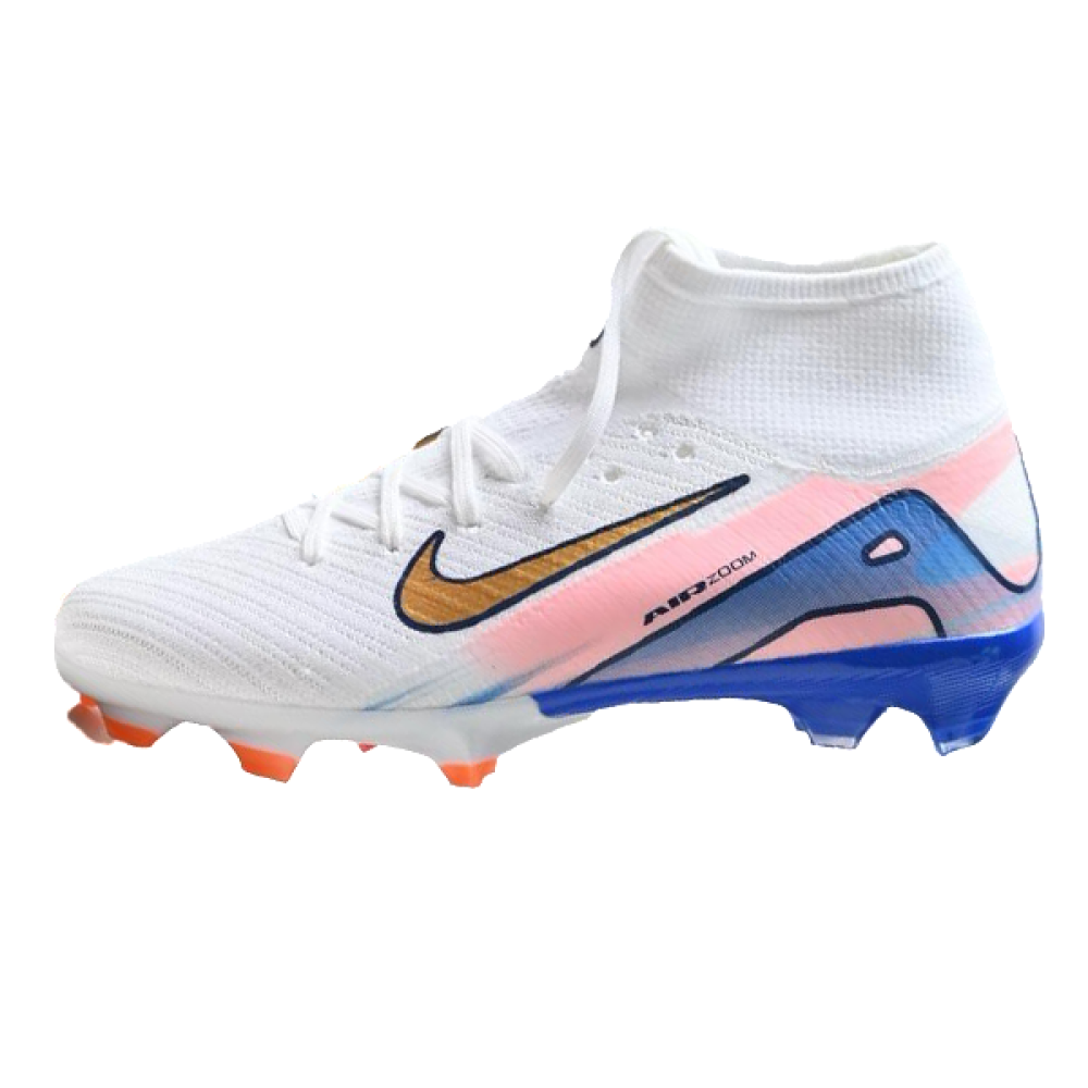 شوز نايكي ميركيوريال سوبرفلاي إيليت 10 باللونين الأبيض والأزرق هو خيار مميز لعشاق اللعبة اللي يبغون يبرزون بمهاراتهم وسرعتهم.