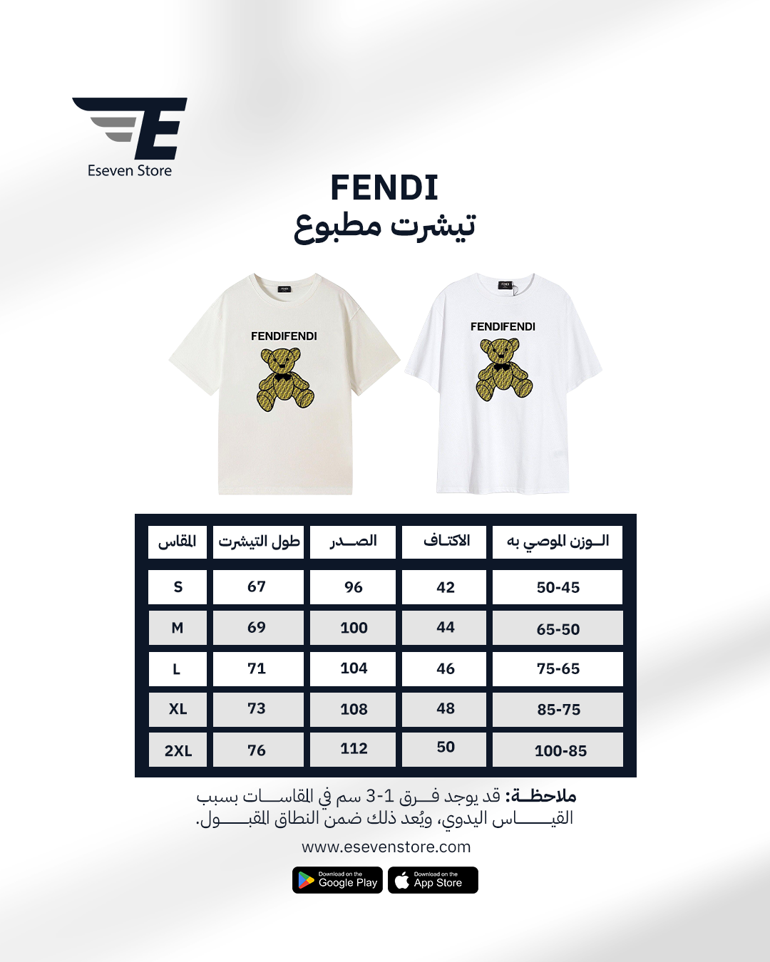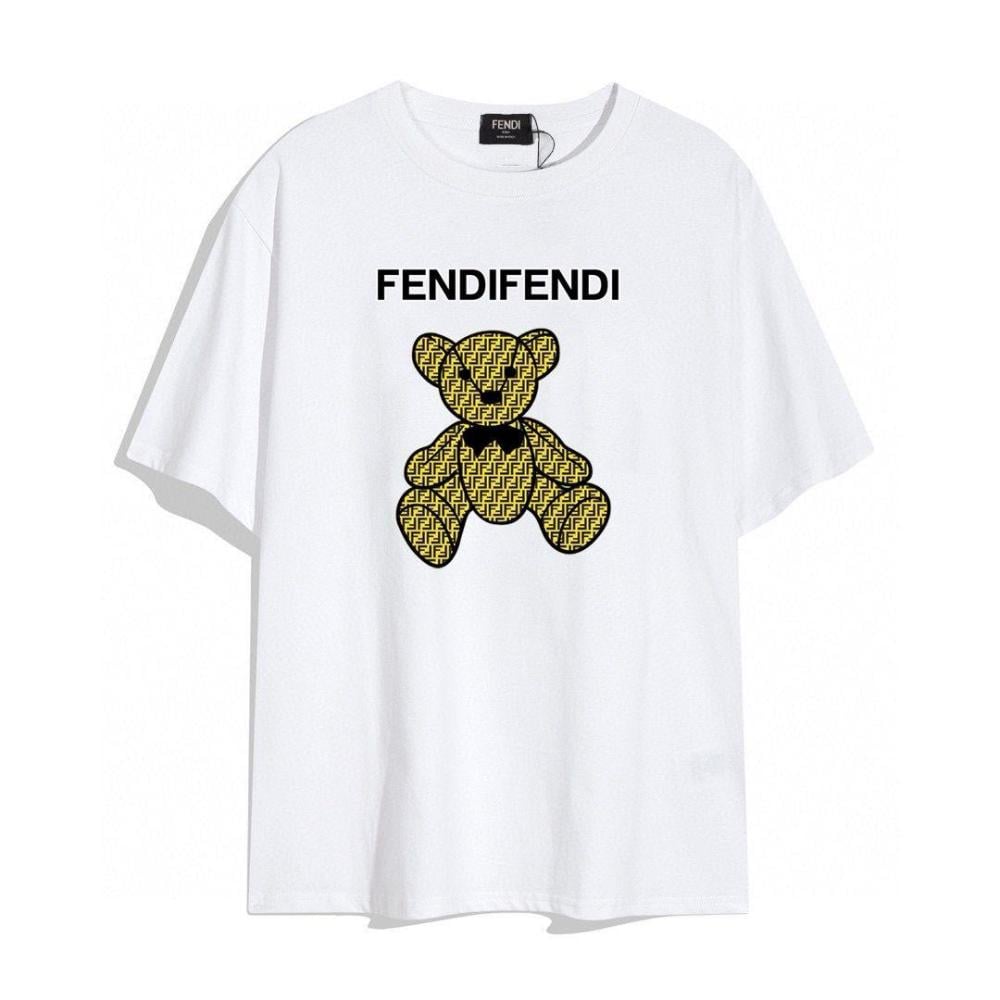 تي شرت فيندي مطبوع بطبعة دب لطيفة لون ابيض