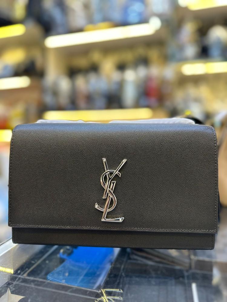 باوتش اف سانت لوران للسيدات جلد فاخر لون أسود وفضي