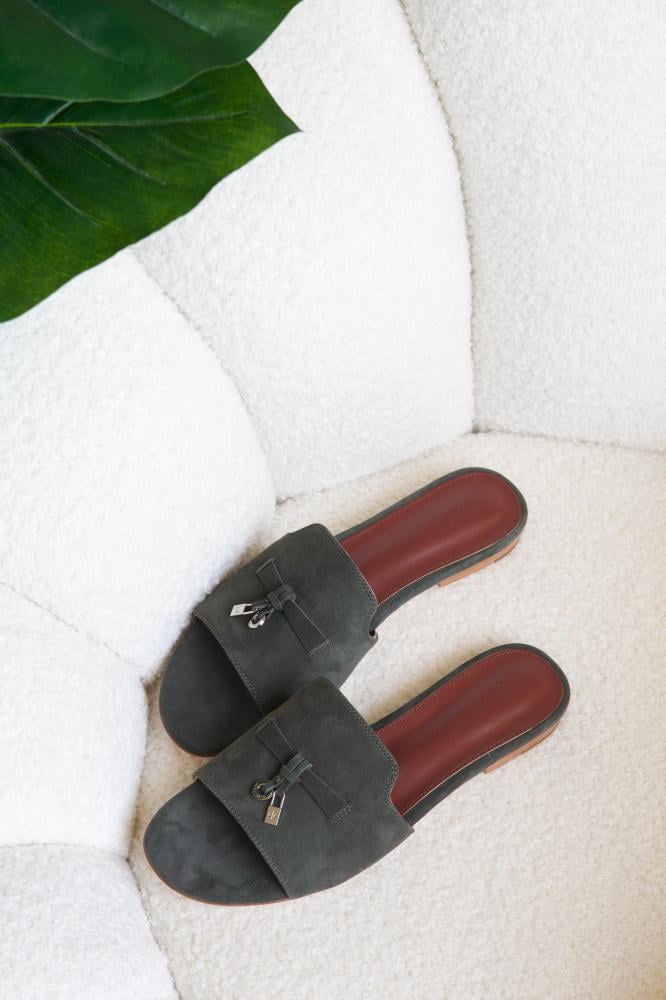 جايبين لكم سليبر لوروبيانا النسائي، الفلات الشامواه الفاخر بلون رمادي اللي راح يأسر قلوبكم. هذا السليبر مو بس شكله أنيق، لكن كمان مريح للغاية للمشي اليومي. مصنوع من الشامواه الناعم اللي يدلل رجولكم، وبلون رمادي كلاسيكي يناسب كل ألوان ملابسكم.