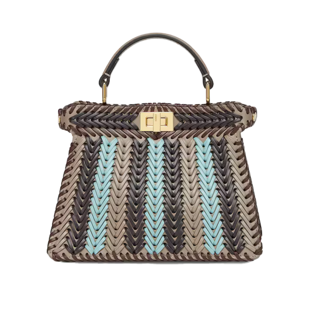 شنطة فندي بيكابو ISeeU جلد متشابك بلون بيج بلو دارك