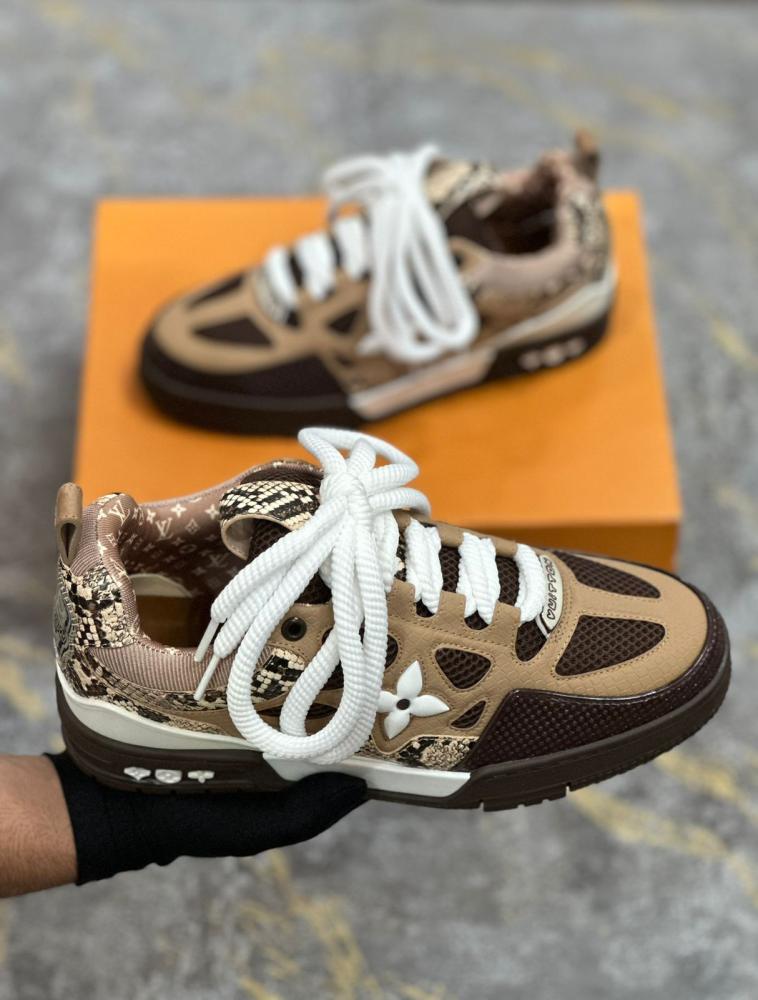 سنيكرز رجالي كاجوال لويس فيتون لون بيج وبني مع ابيض