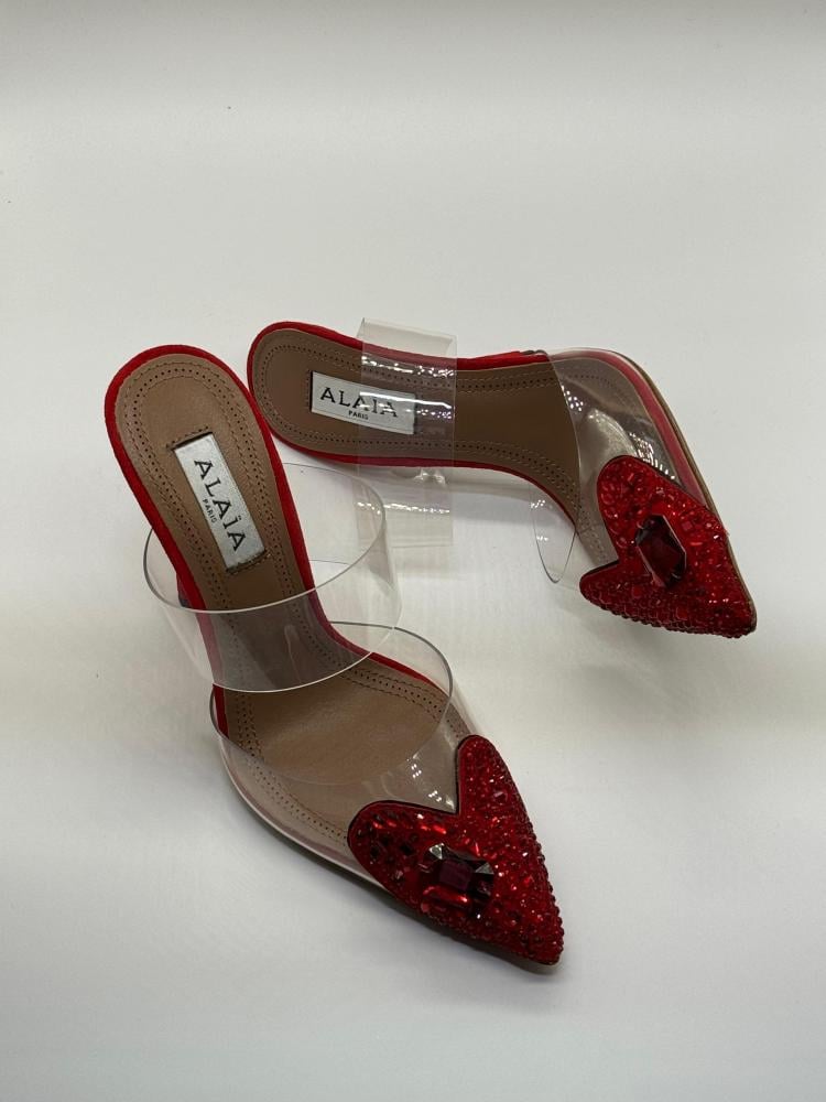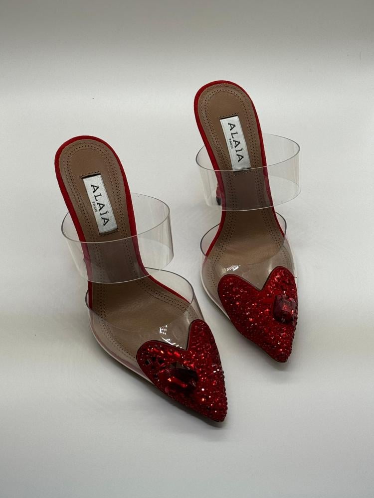 مزايا حذاء كعب الايا alaia شفاف احمر :