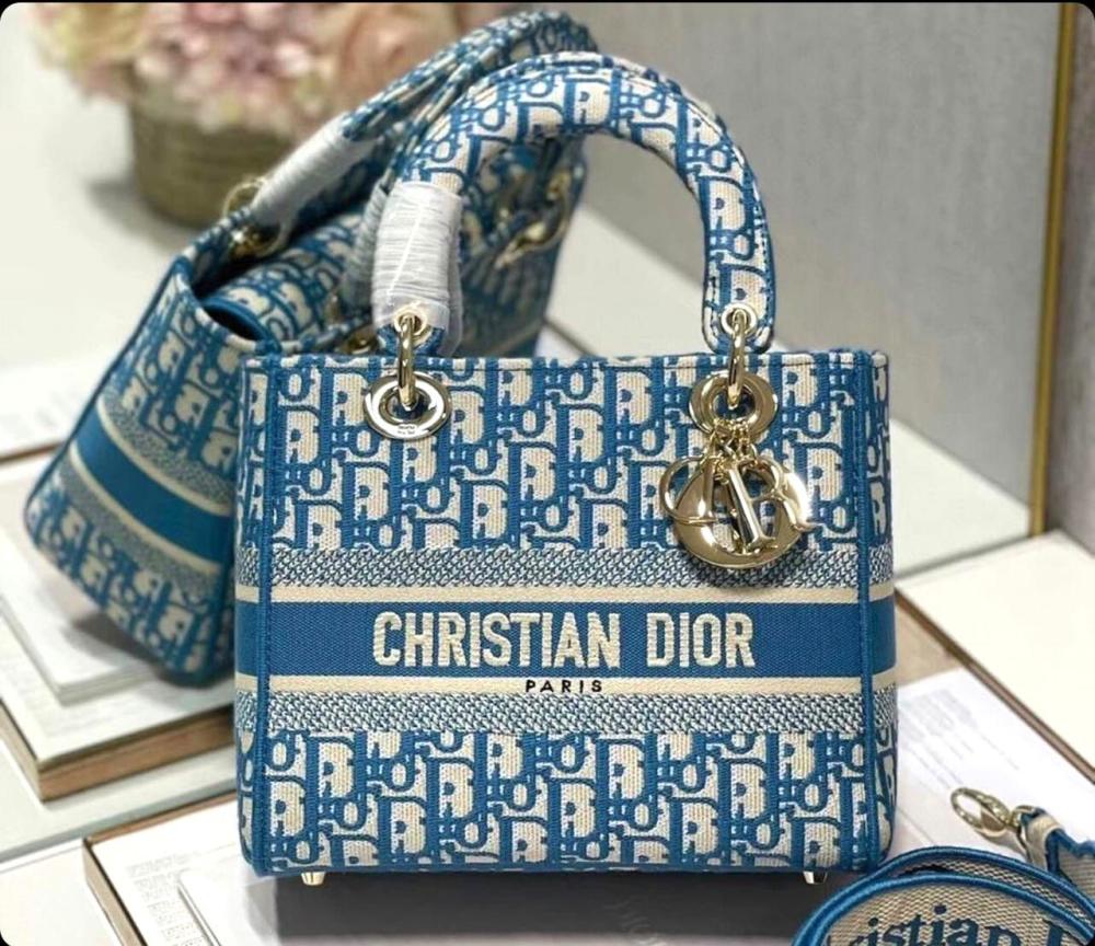 شنطة نسائية DIOR مطرزة بشعار الماركة لون أرزق بيج