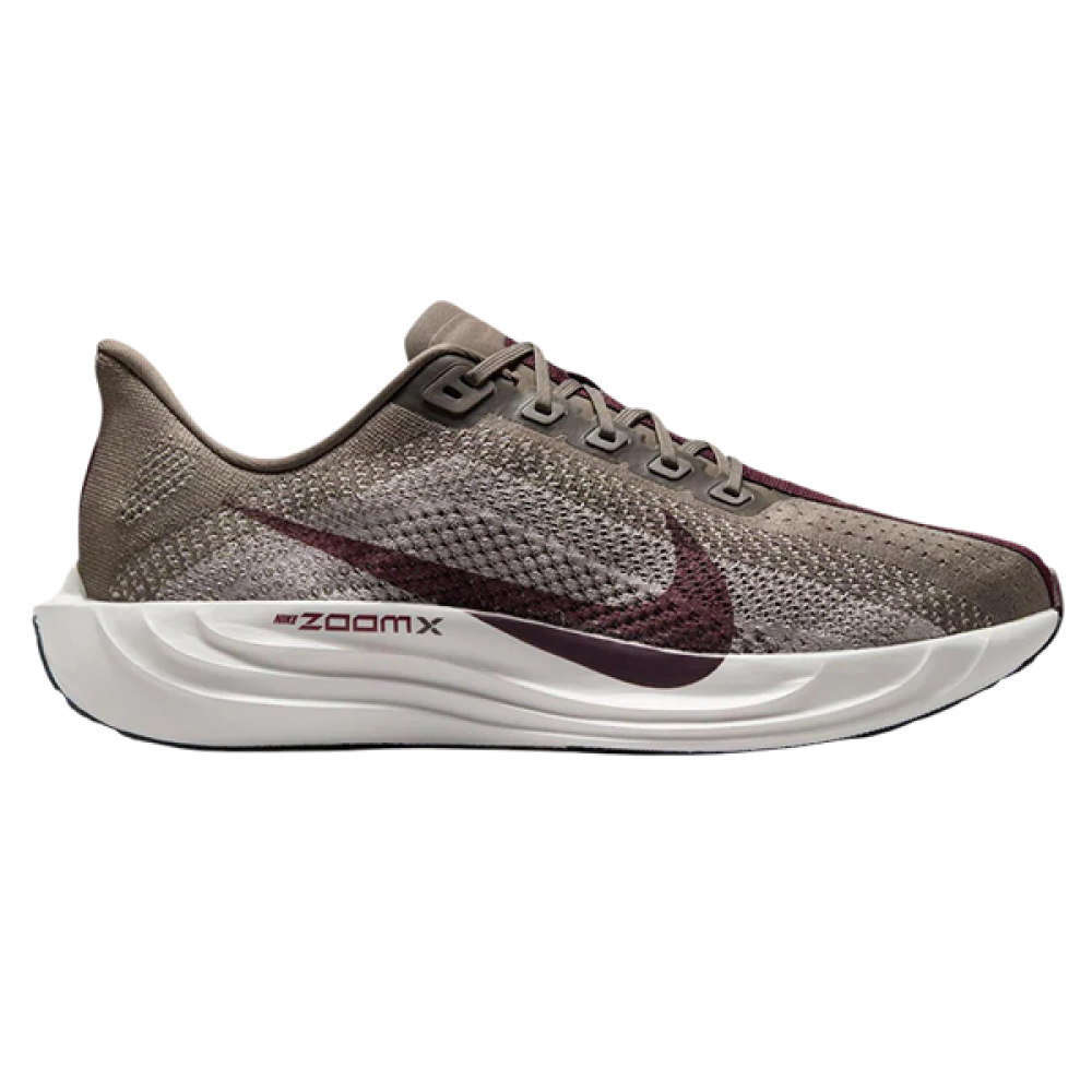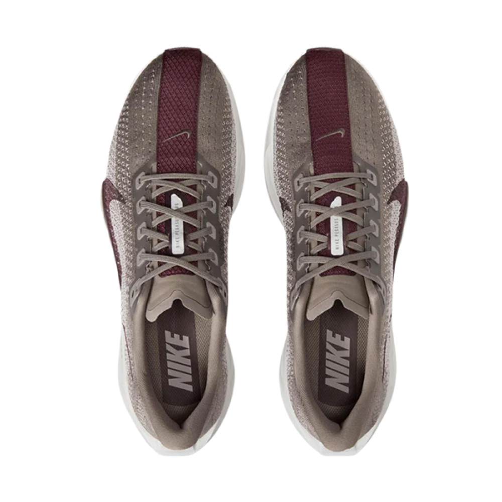 حذاء نايك بيجاسوس بلس يجمع بين الشبك المهوّى باللون الرمادي والبني مع تصميم عملي يناسب الجنسين، ليمنحك أداء مريح سواء في الجري أو في اللبس اليومي الكاجوال.