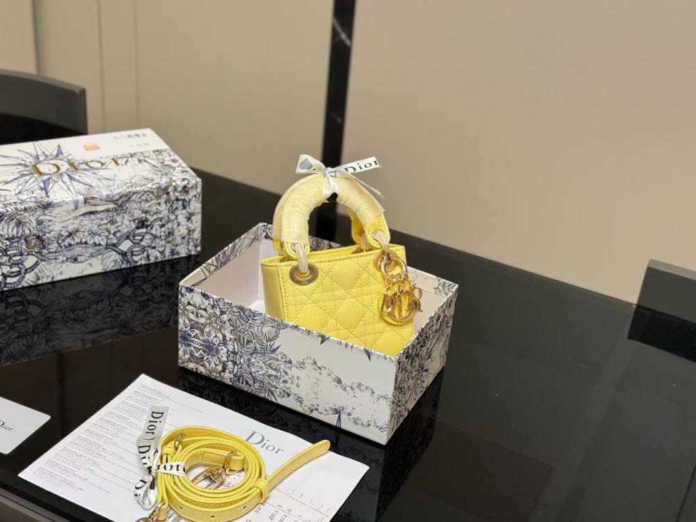 شنطة صغيرة جدا ليدي ديور بلون أصفر عصري مع حامل كتف