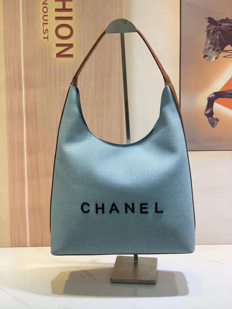 حقيبة سحاب شانيل توت باق قماش لون أزرق وبني