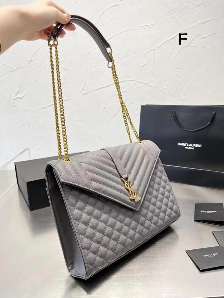 شنطة كتف وسط سان لوران 13سم بسلسلة كتف لون رمادي وذهبي