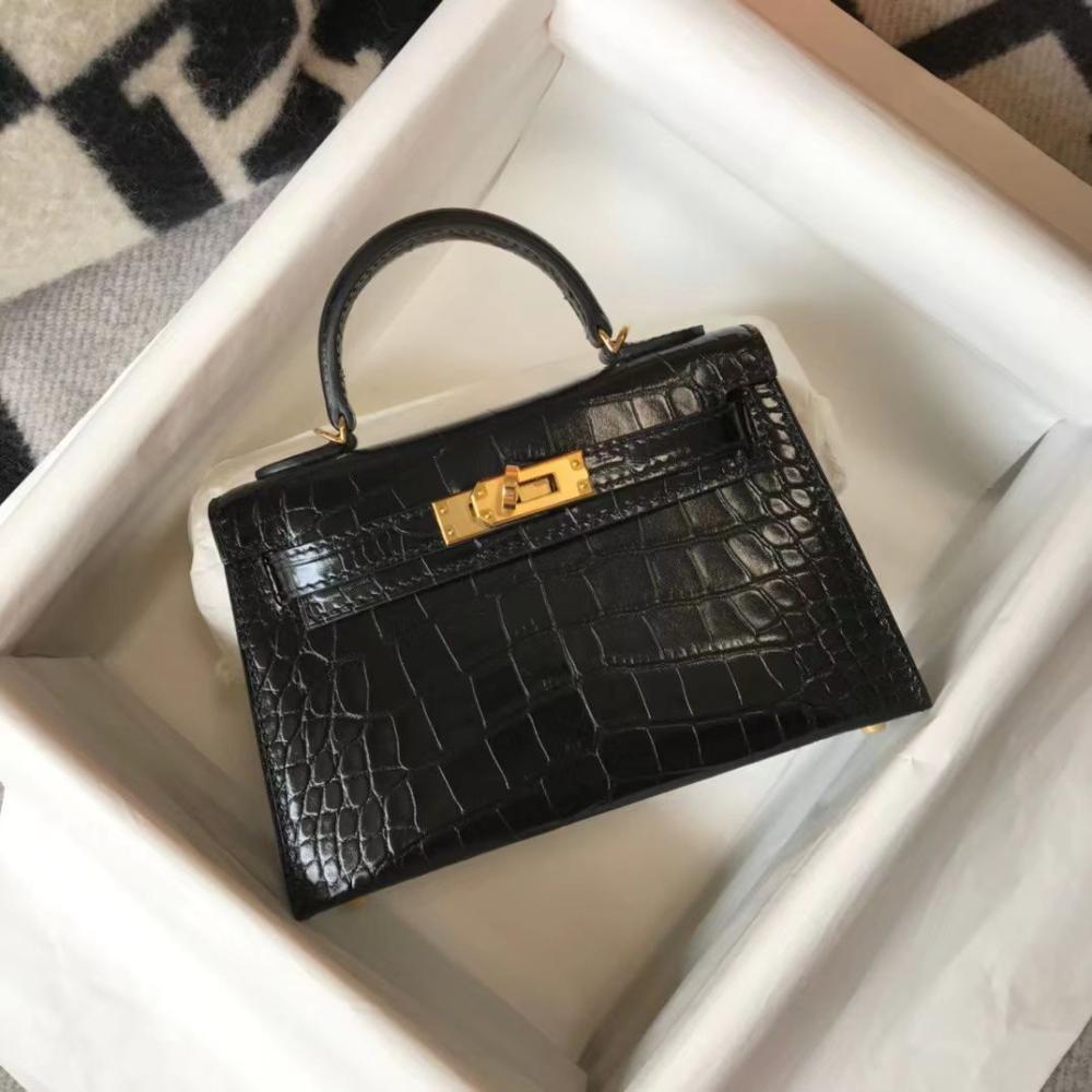 حقيبة نساء هيرميس ميني كيلي كروكوديل باللون الأسود الراقية