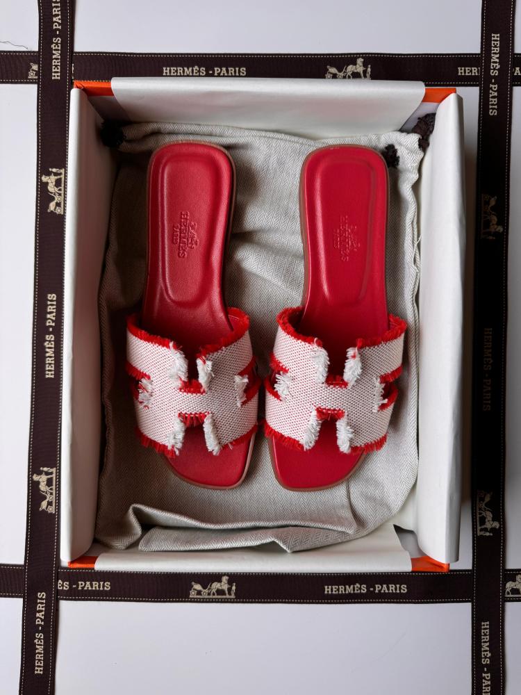 اجعلي كل خطوة أكثر أناقة وراحة مع شبشب هيرمس أوران الأحمر والأبيض. اطلبيه الآن عبر eseven store لتحصلي على هذا التصميم المميز!