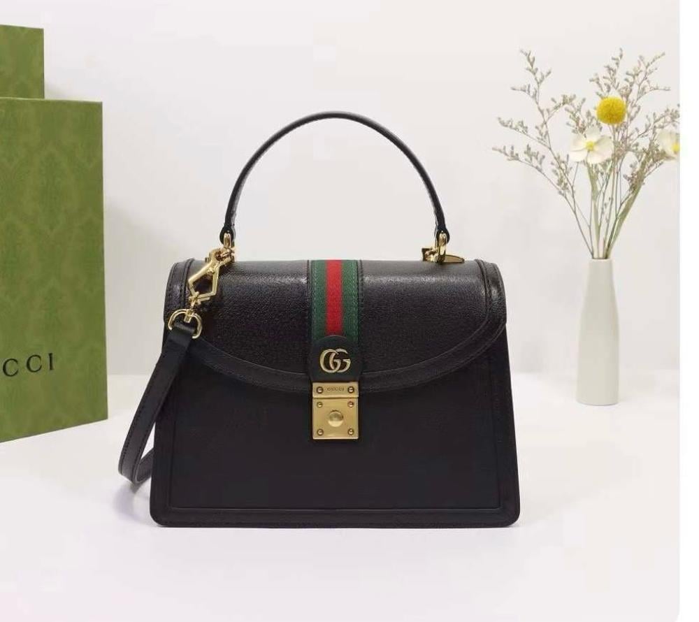 شنطة يد قوتشي أوفيديا بقفل وحامل كتف جلد بلون أسود
