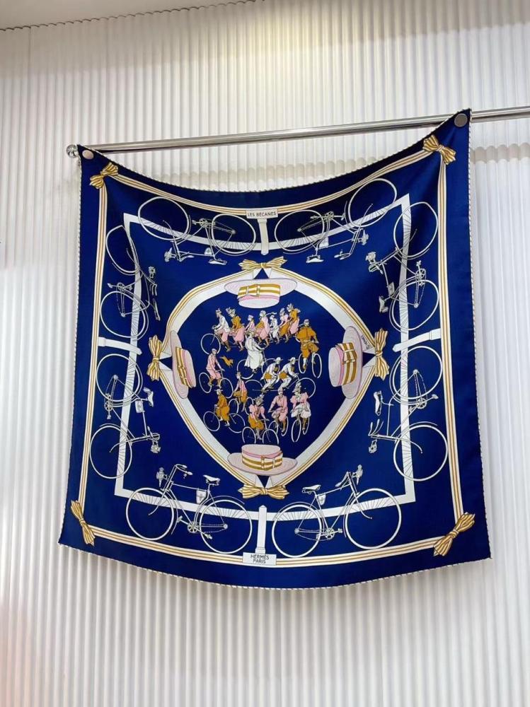 سكارف مربع هيرمس ايبرون بندانة رأس بنقوش صيفية لون بلو نايت