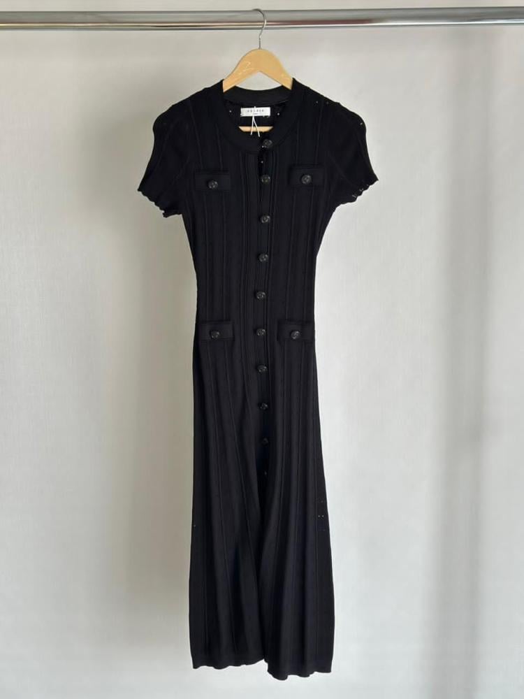 فستان بأكمام قصيرة ساندرو وأزرار أمامية لون أسود