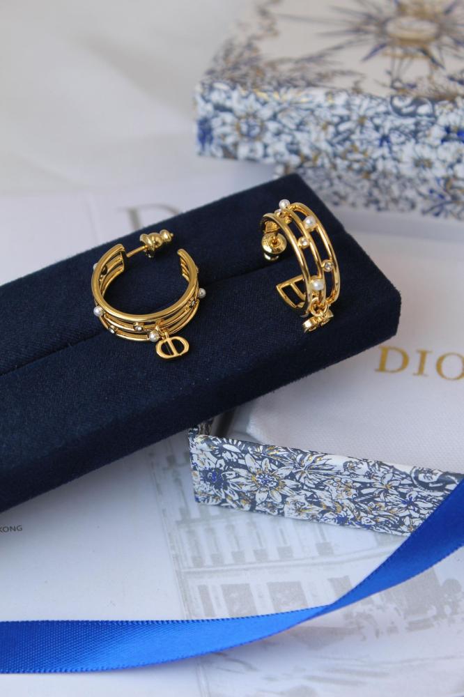 أقراط ديور باك ستيج لون ذهبي بشعار الماركة