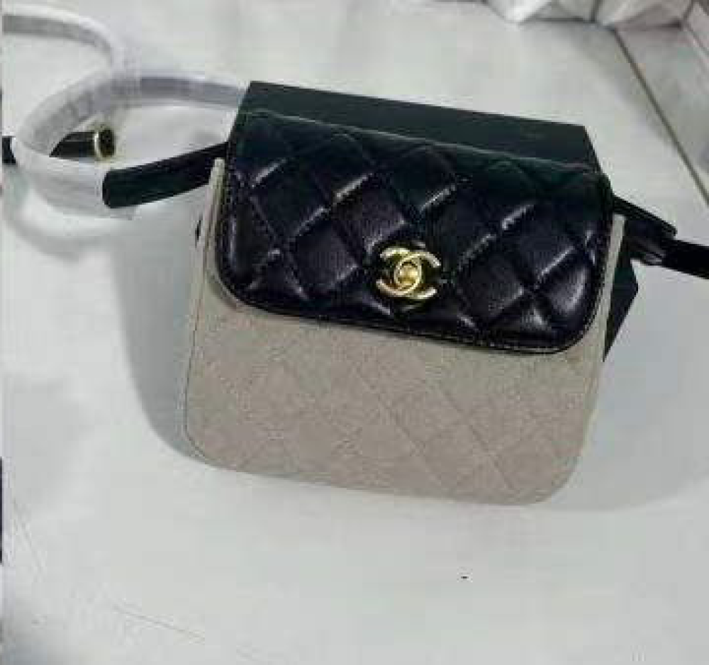 شنطة كتف ميني شانيل 25A قماش وجلد لون رمادي واسود
