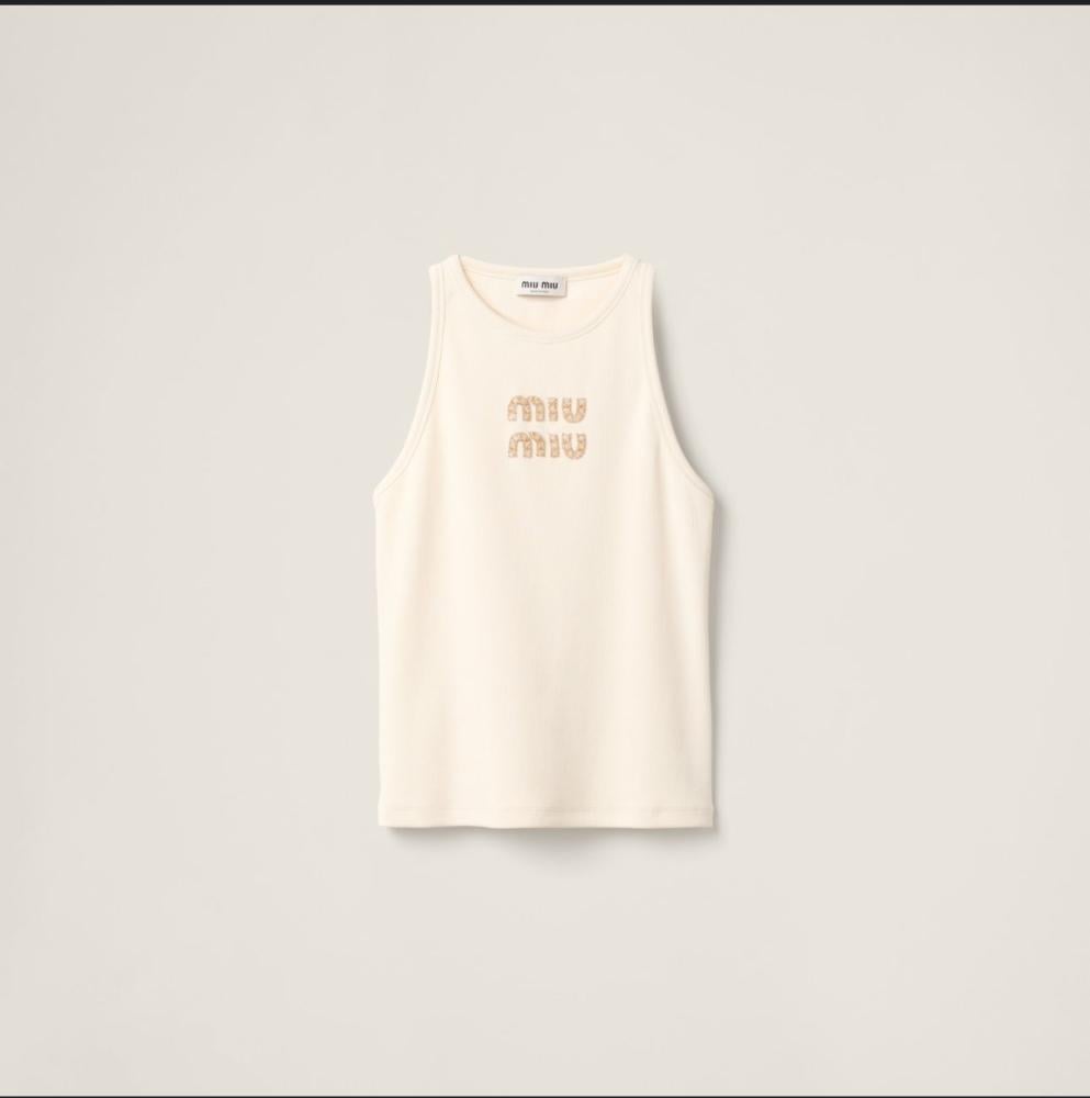 توب أبيض للنساء بدون اكمام ميوميو بشعار الماركة