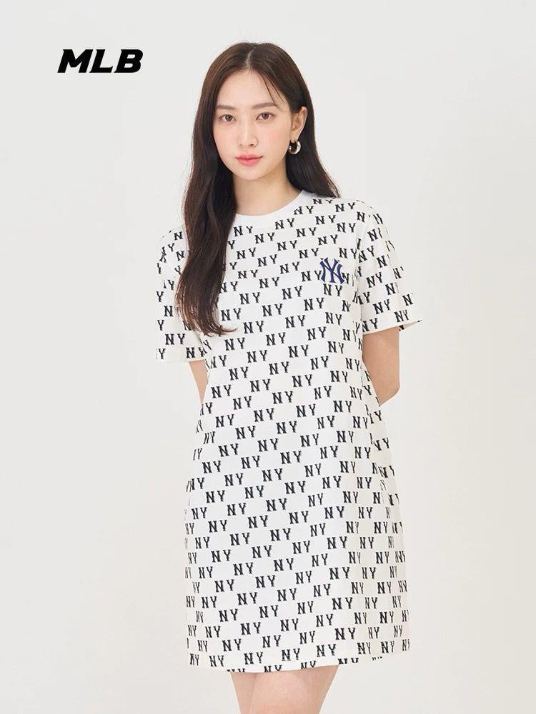 فستان قصير سبور MLB نيويورك يانكيز لوجو الماركة ابيض واسود