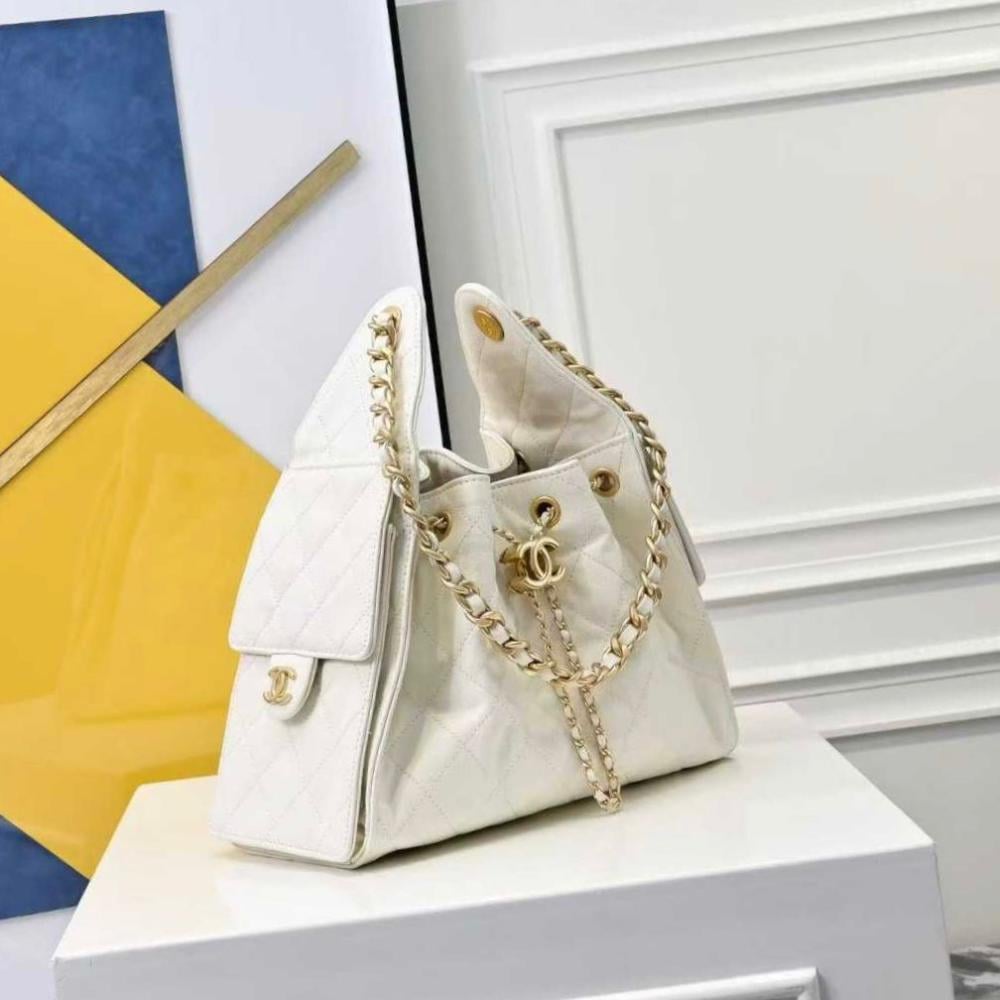 حقيبة كتف بسلسلة شانيل 25 لون أبيض