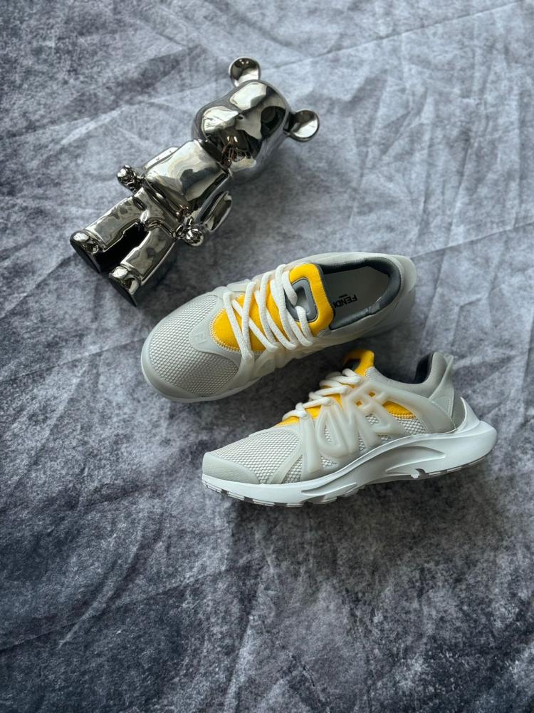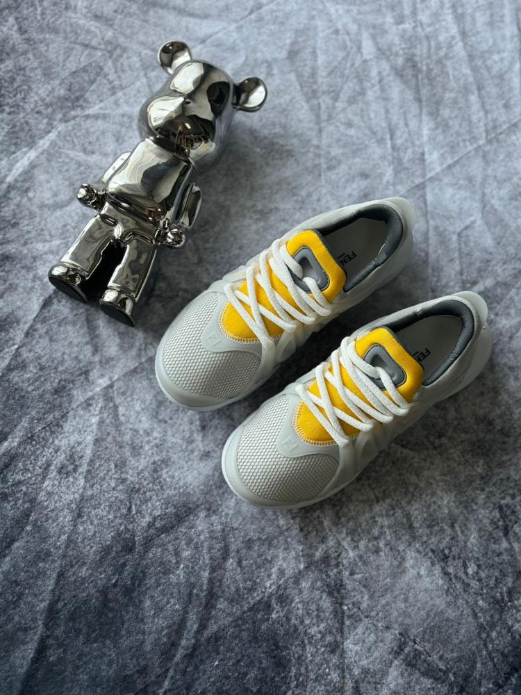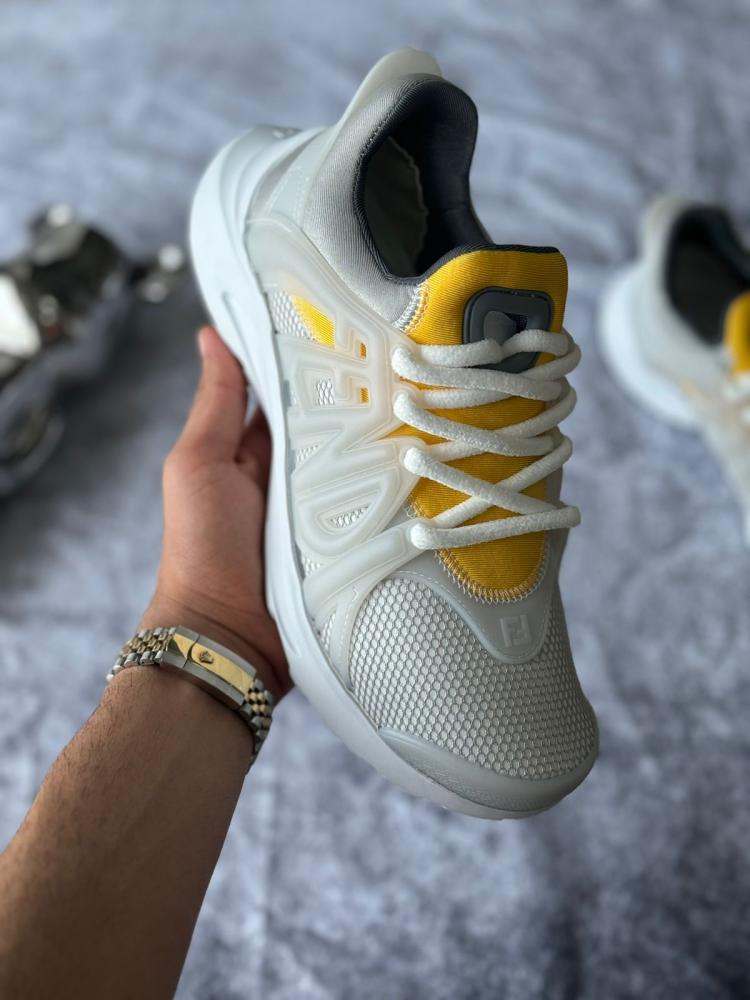 سنيكر فيندي رجالي رياضي - رمادي وأصفر مع حروف جانبية عريضة Fendi