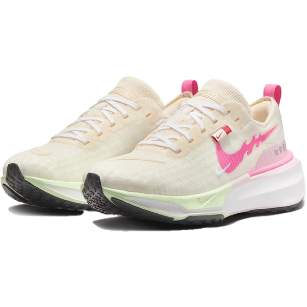 كوني الأبرز في كل مسار! أضيفي حذاء نايكي ZoomX Invincible الأبيض والزهري إلى سلتك الآن وتمتعي بتجربة جري لا تُنسى مع لمسة من الأناقة.