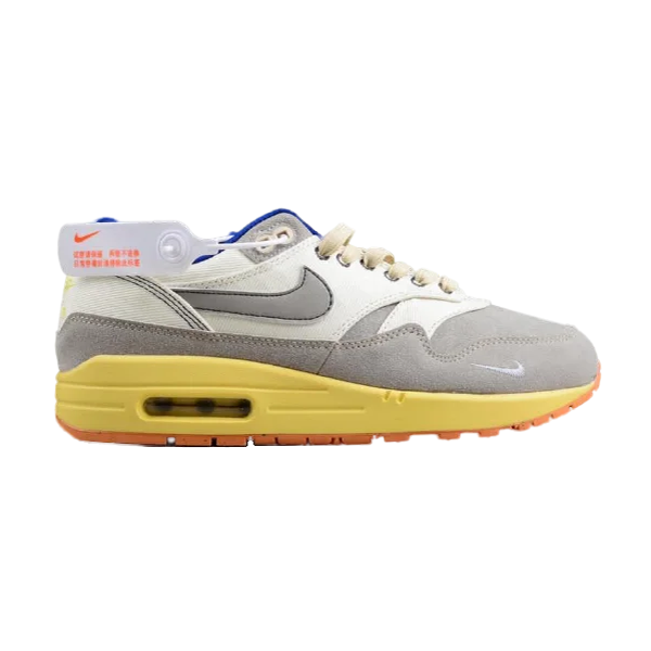 استمتع بالراحة والأناقة مع حذاء رياضي للجنسين من نوع "Air Max" باللون الرمادي والأصفر.