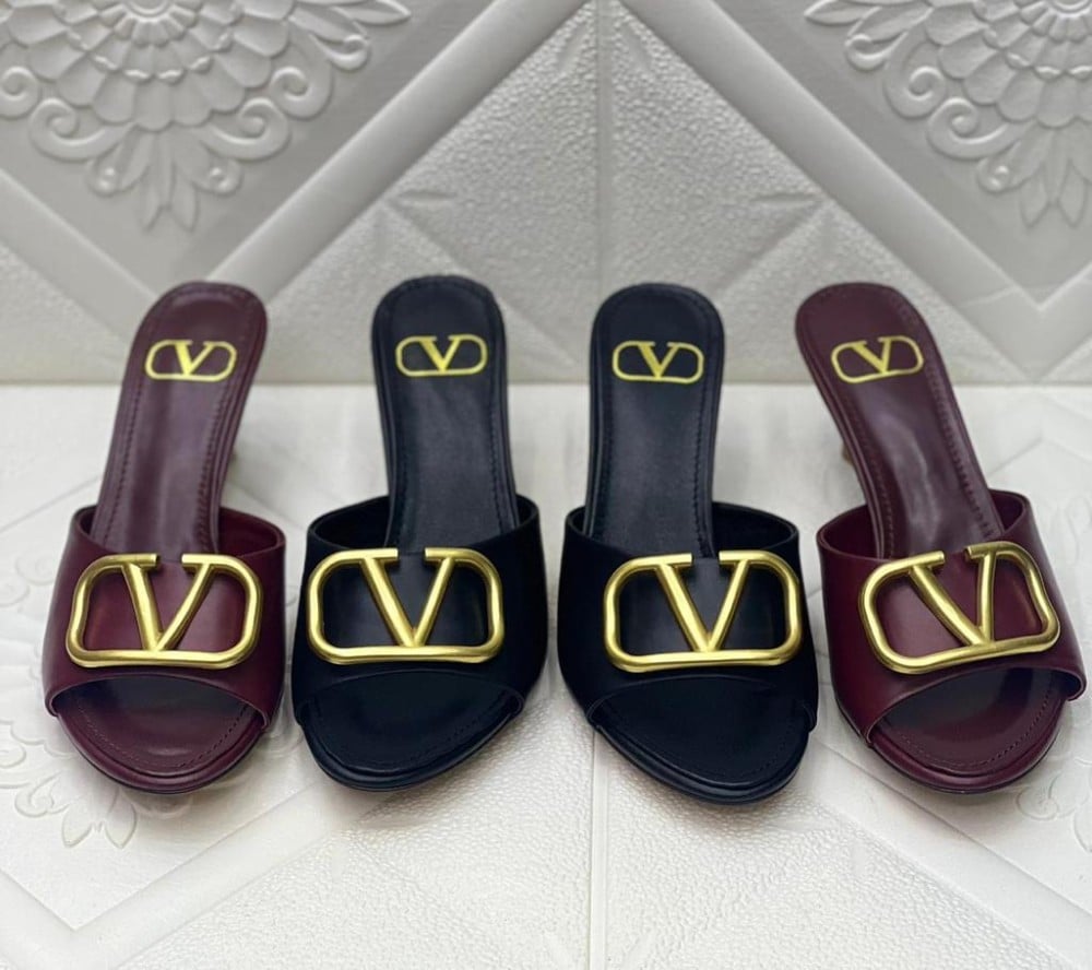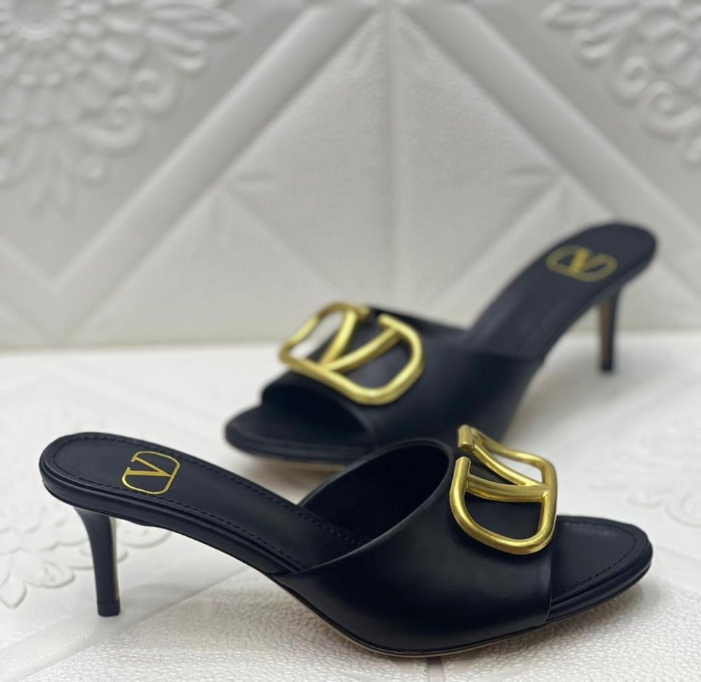 حذاء فالانتينو النسائي باللون الأسود الأنيق، الذي يعكس الفخامة والتصميم الراقي. مع شعار V الذهبي المميز والكعب الرفيع، يجسد هذا الحذاء الجاذبية والأناقة اللامتناهية، مما يجعله الخيار المثالي للمناسبات الخاصة أو الأمسيات المميزة.