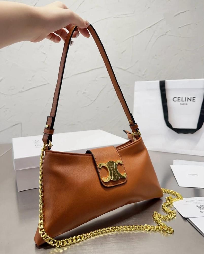 شنطة كتف سيلين جلد فاخرة لون عسلي معدن ذهبي