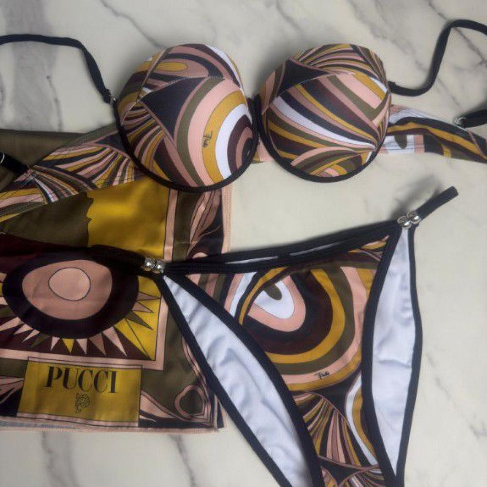 لباس بحر نسائي من بوتشي بكيني مع تنورة منفصلة بألوان بني