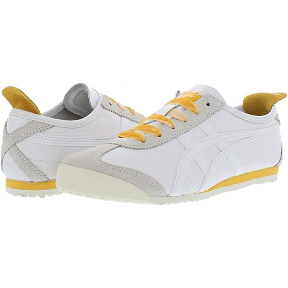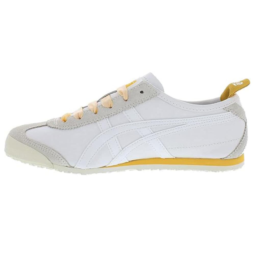حذاء Onitsuka Tiger Mexico 66 بألوانه المتناسقة (أبيض، رمادي، وأصفر) يقدم مزيج مثالي بين الراحة، الجاذبية، والأصالة اليابانية المعروفة من تايجر.
