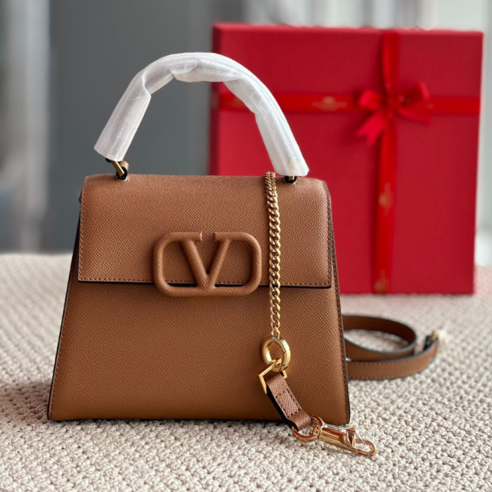 حقيبة يد صغيرة فالنتينو جارافاني من جلد العجل المحبب مع إغلاق بشعار مزود بحزام كتف قابل للتمديد ، يمكن ارتداء هذا الملحق كحقيبة كتف او كروس ، أو حمله في اليد باستخدام المقبض.