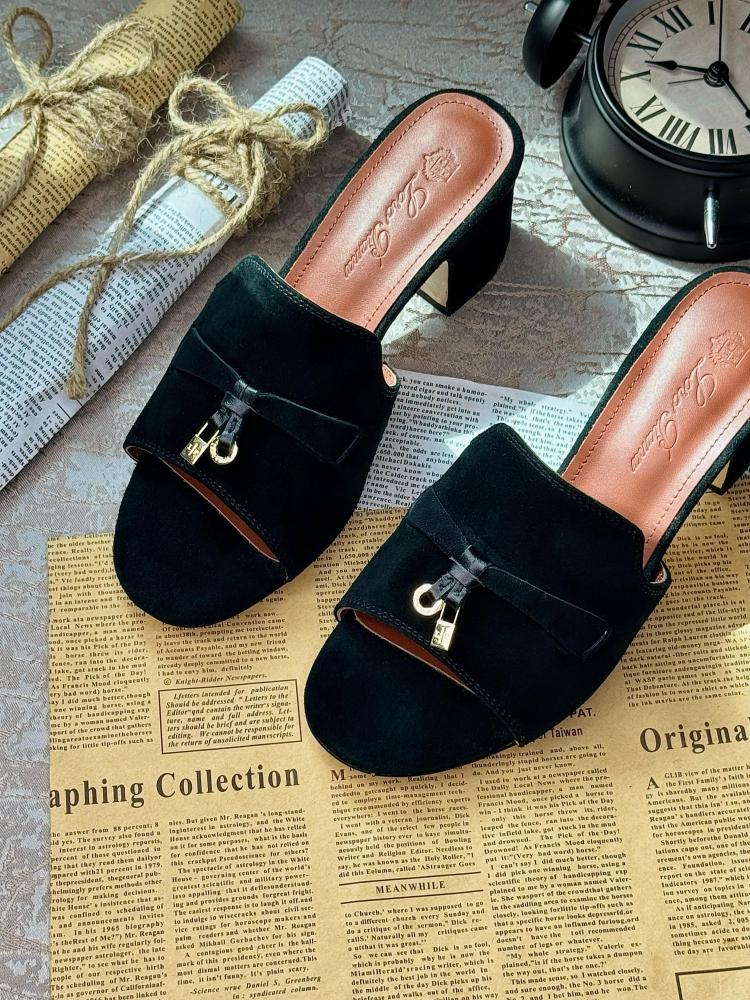 اطلبيه الحين شبشب لوروبيانا النسائي بكعب متوسط من الشامواه بلون أسود كلاسيكي وأنيق! تصميمه فخم ومثالي لأي مناسبة، سواء كانت رسمية أو عصرية. الفيونكة الصغيرة قدام مع القطعة المعدنية الذهبية تضيف لمسة راقية لا تقاوم. الكعب المتوسط ارتفاعه مثالي يضمن لك الراحة والأناقة بنفس الوقت.