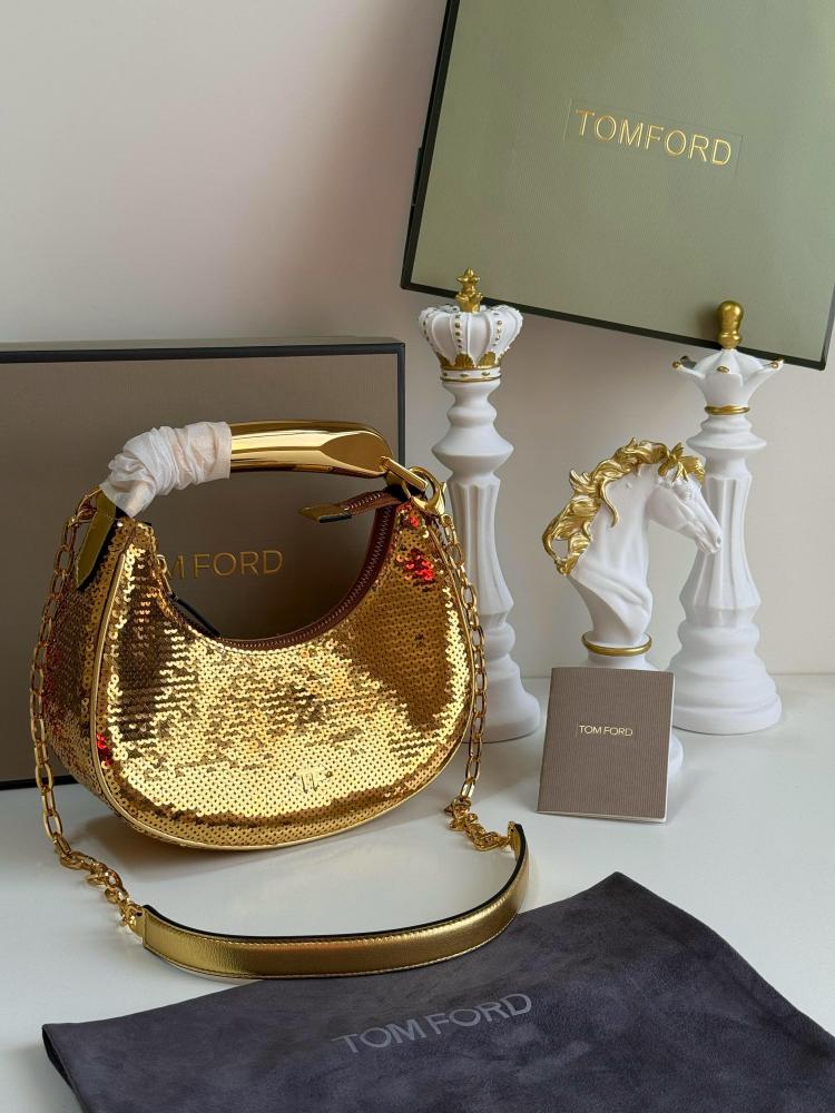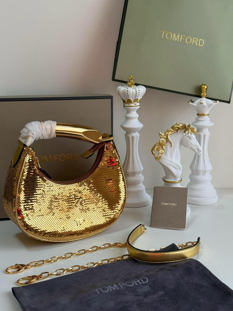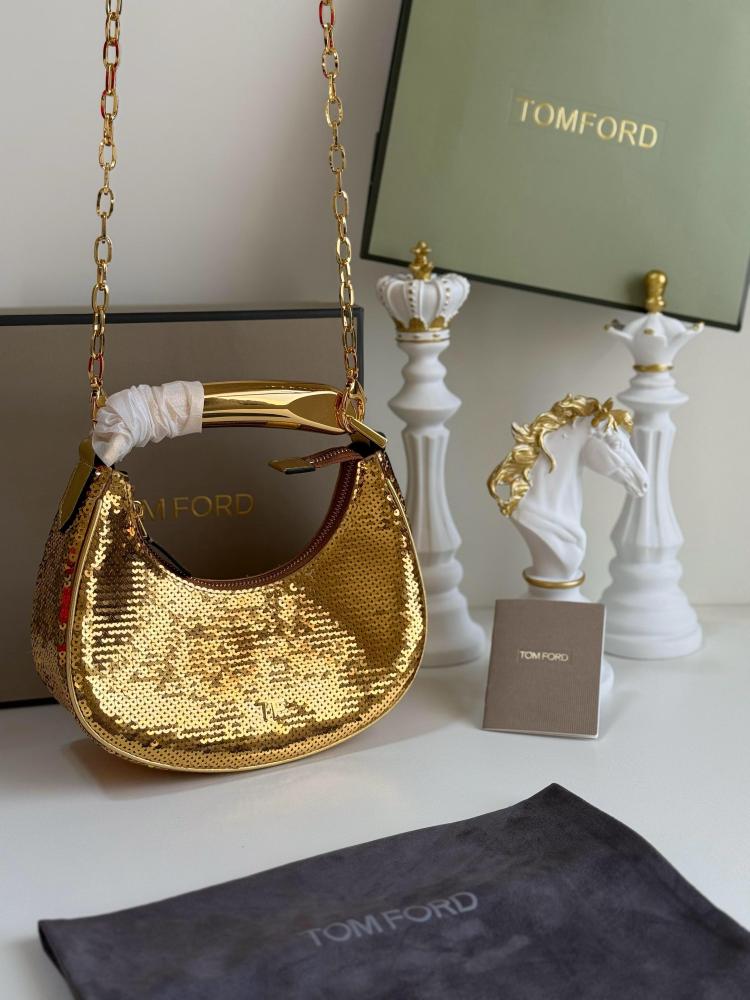 شنطة بمقبض معدني توم فورد بيانكا ميني سيكوين 22سم ستراس ذهبية