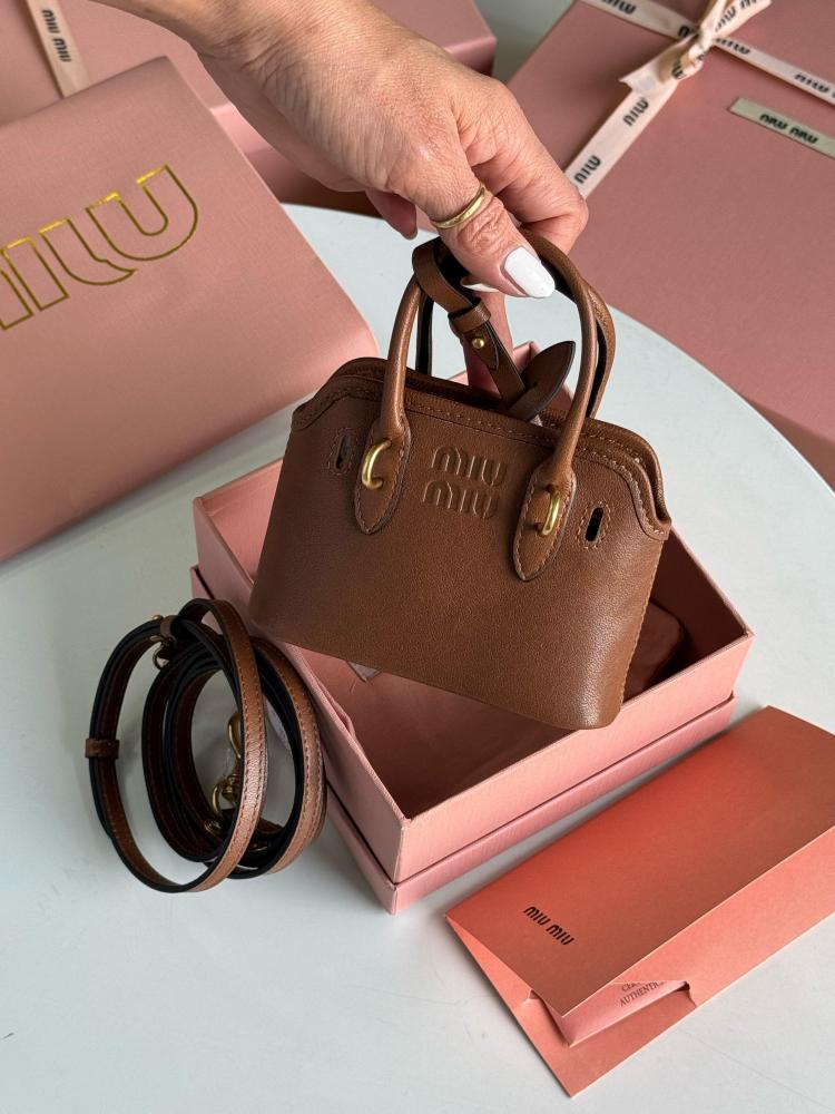 حقيبة ميكرو ميوميو جلدية عصرية بلون عسلي