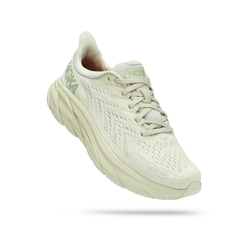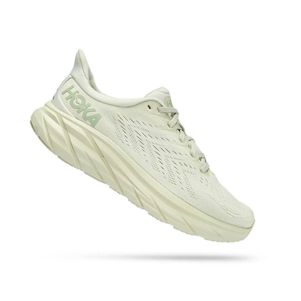 تألق براحة فائقة وأسلوب أنيق مع شوز هوكا كليفتون 8، المصمم للجنسين بلونه الأبيض النقي مع لمسات من الرمادي الفاتح.