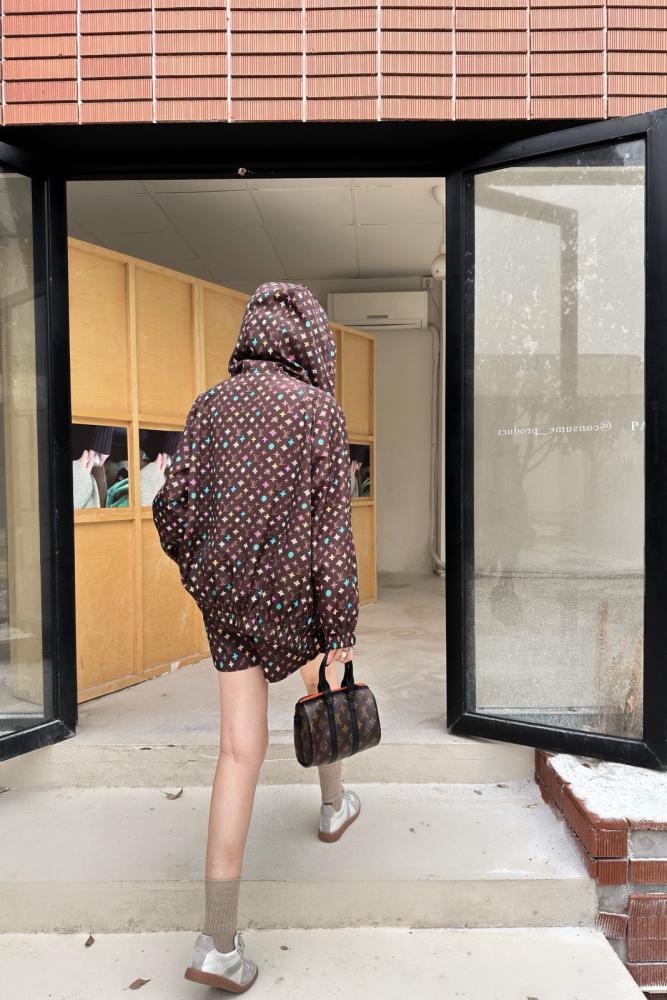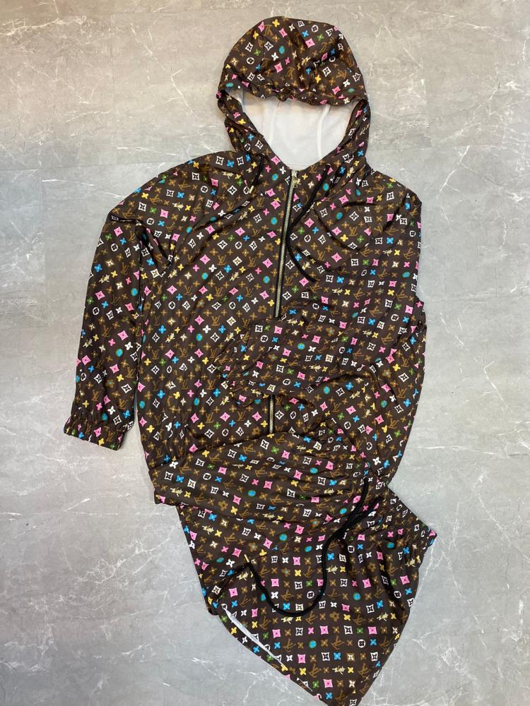 طقم كاجوال لويس فيتون للنساء شورت وجاكيت بشعارات ملونة