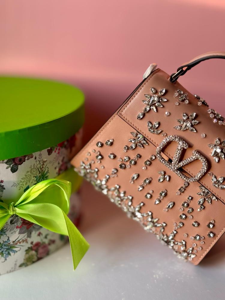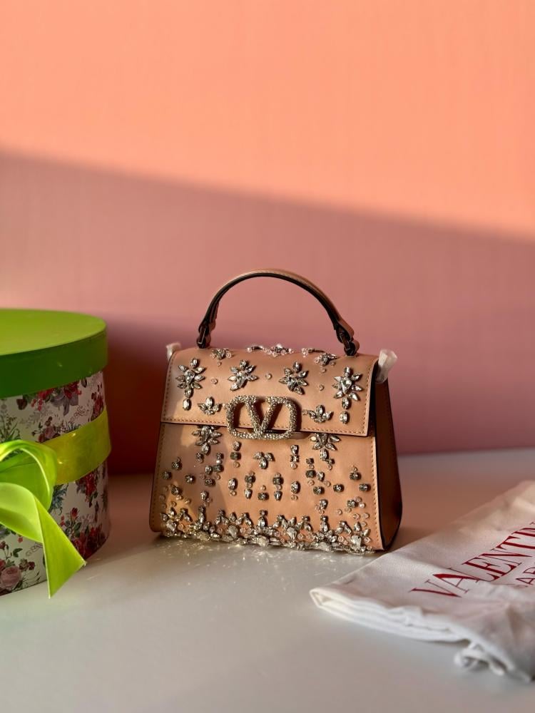 احصلي على حقيبة فالنتينو V لوغو المرصعة بالكريستال الآن من eseven store وأضيفي لمسة من الفخامة والرقي إلى إطلالتك.