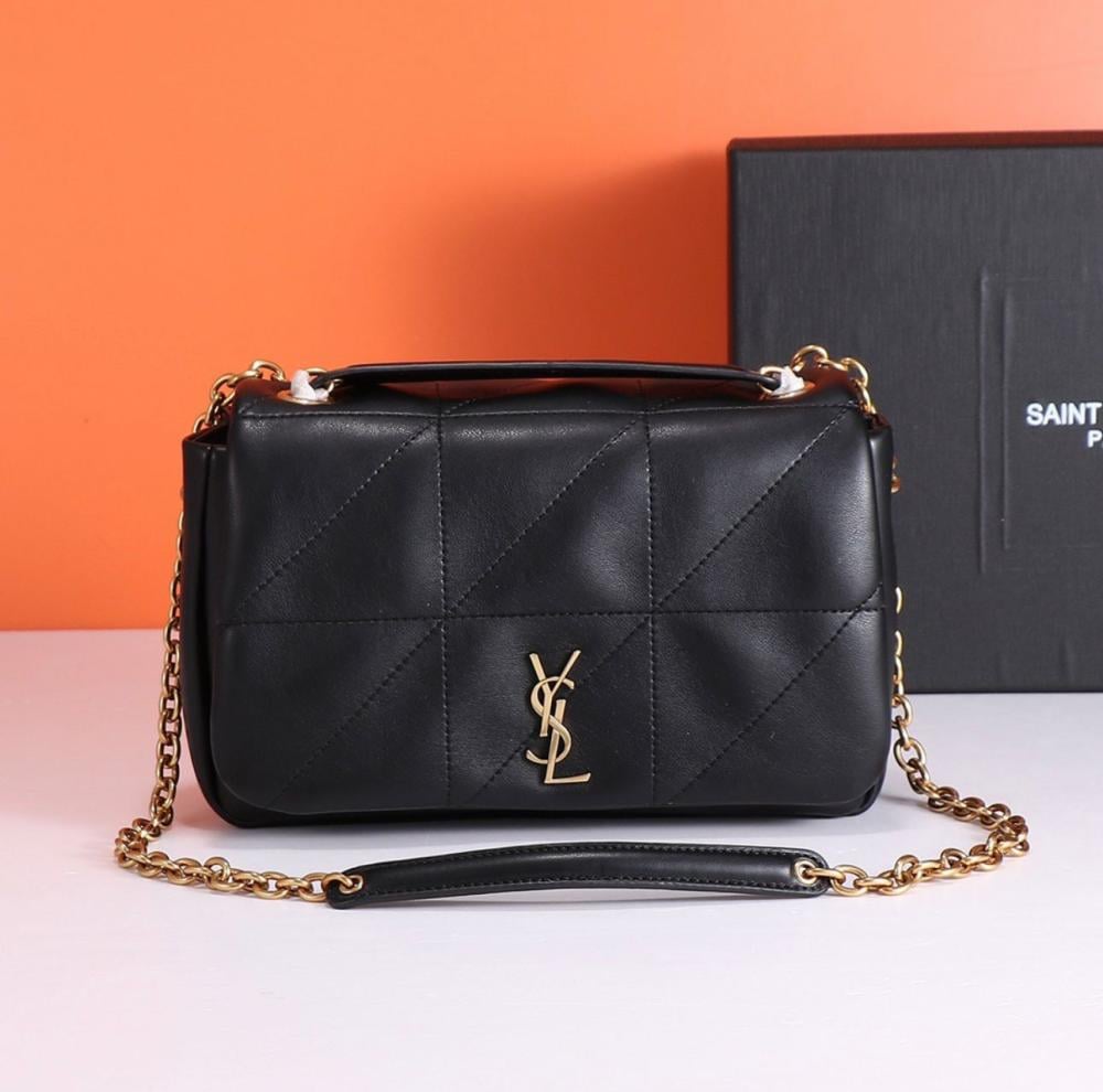 شنطة جلد سانت لوران نسائية Jamie لون أسود بسلسلة ذهبية