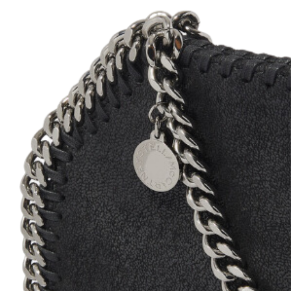 اجذبي الأنظار بأناقة مع حقيبة ستيلا مكارتني ميني توت السوداء، المميزة بسلسلة فضية تضفي لمسة من الفخامة والأناقة على تصميمها.