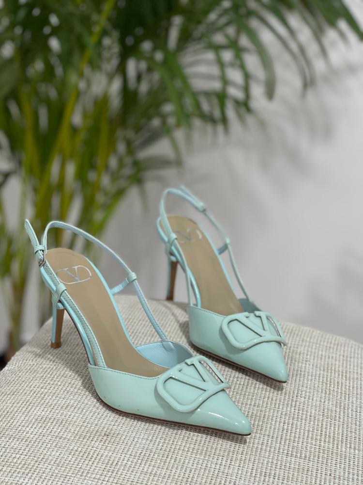 صندل فالنتينو V لوجو80 النسائي بلون أكوا المشرق مع لمسة لامعة يمنحك حضوراً راقياً وجاذبية لا تضاهى في أي مناسبة