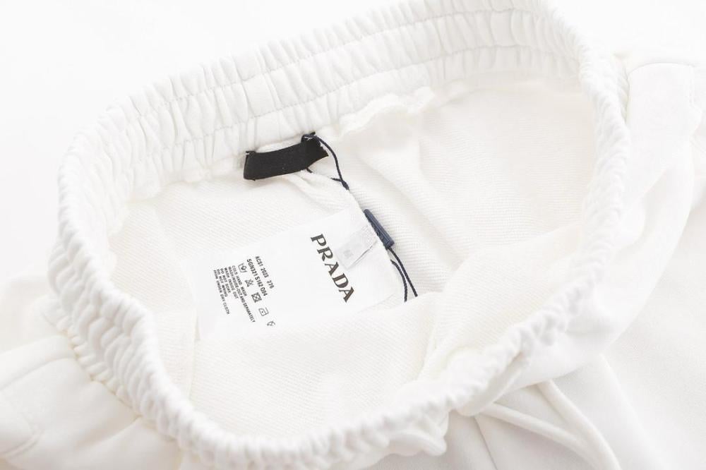 شورت رياضي برادا رجالي خصر مطاطي لون أبيض بشعار الماركة