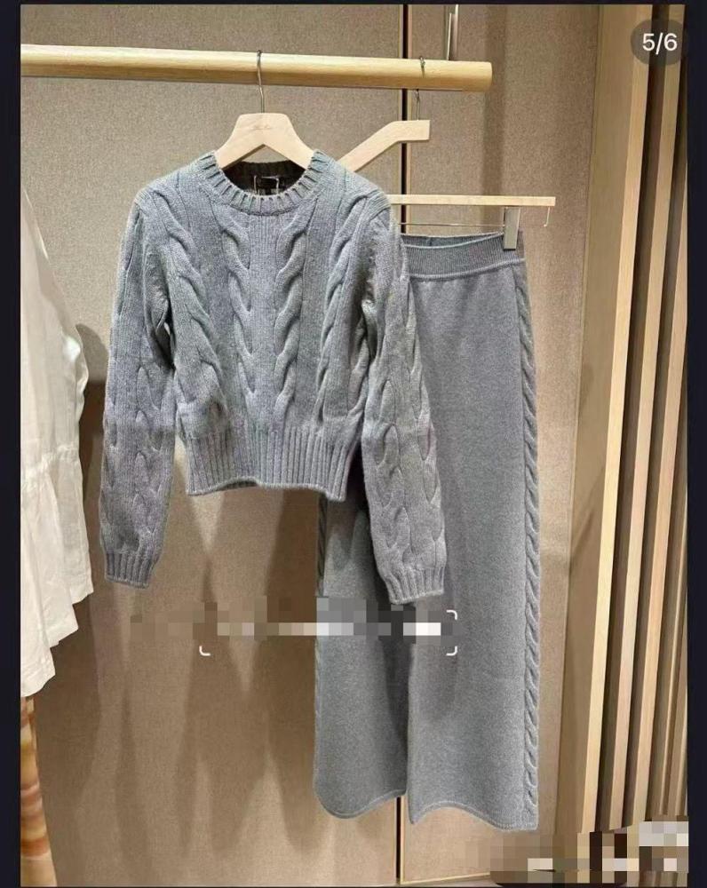 لوروبيانا سيت شتوي بنطال وبلوزة بنمط واسع لون رمادي