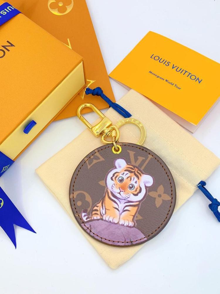 تعليقة حقائب لويس فيتون ومفاتيح جلدية بطبعة النمر اللطيف